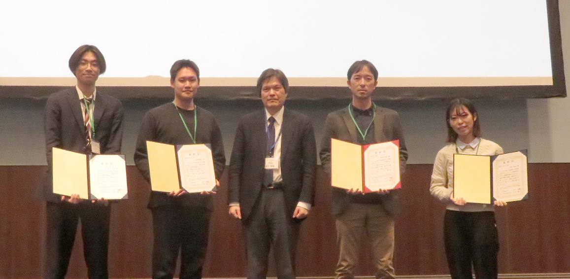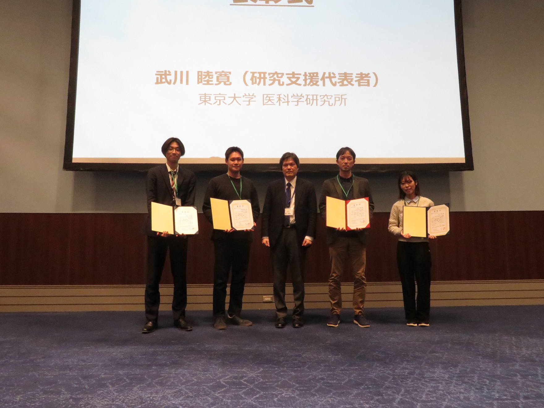 左から、鈴木 涼介さん、滝澤 叡弘さん、武川研究支援代表、村田 知弥さん、近間 皓好さん