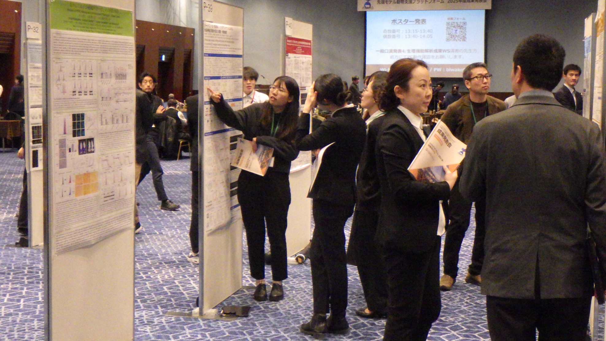 2025年度AdAMS成果発表会は、2026年2月19日・20日の両日、琵琶湖ホテルにて開催し、118名が参加しました。基調講演・特別講演に続き、各成果ワークショップ、口頭・ポスター発表を通して、モデル動物研究の最前線が提示されました。いずれの発表においても質疑応答は極めて活発で、予定時間を超えて議論が続く場面も多く、若手研究者から指導的立場の研究者までが立場を越えて意見を交わしました。今年度はランチョンセミナーの新設やポスター賞の全員投票制を導入し、参加者主体の運営を実現しました。研究成果の共有にとどまらず、新たな連携と発想を生む、熱量あふれる成果発表会となりました。