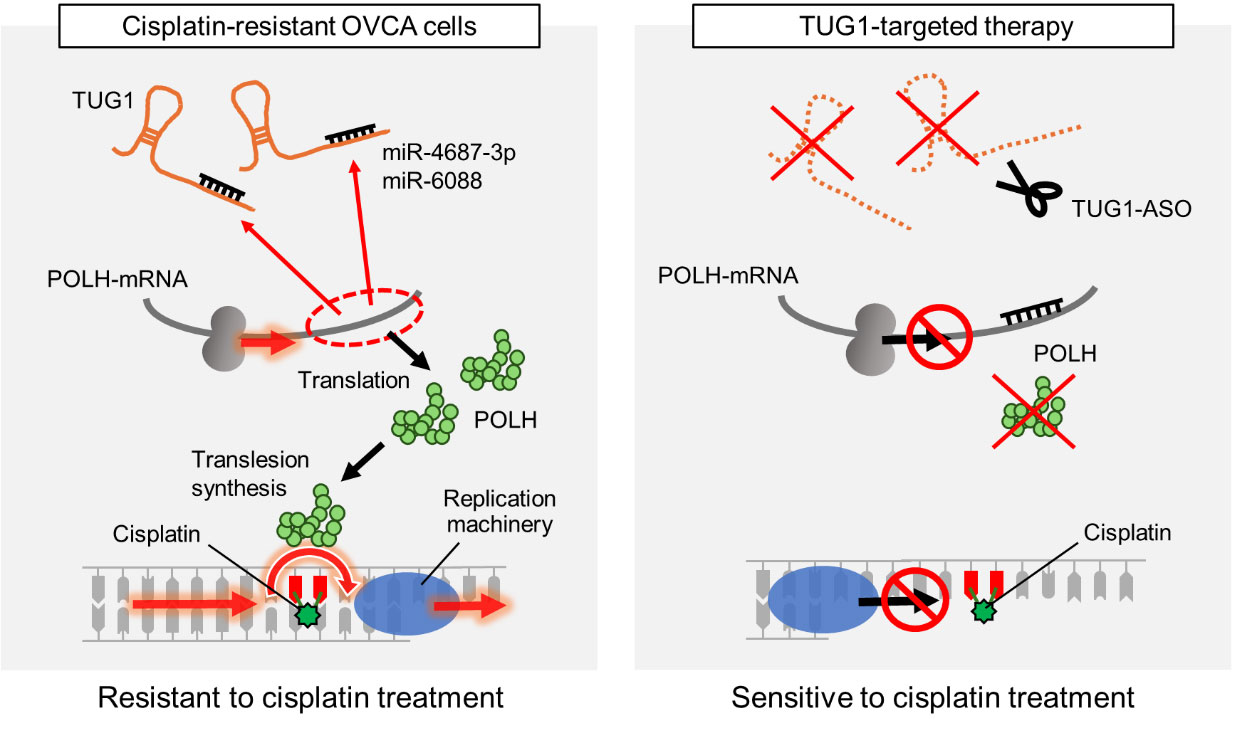 長鎖非翻訳RNA TUG1はDNAポリメラーゼηの発現亢進を介して卵巣がんのシスプラチン耐性を促進する