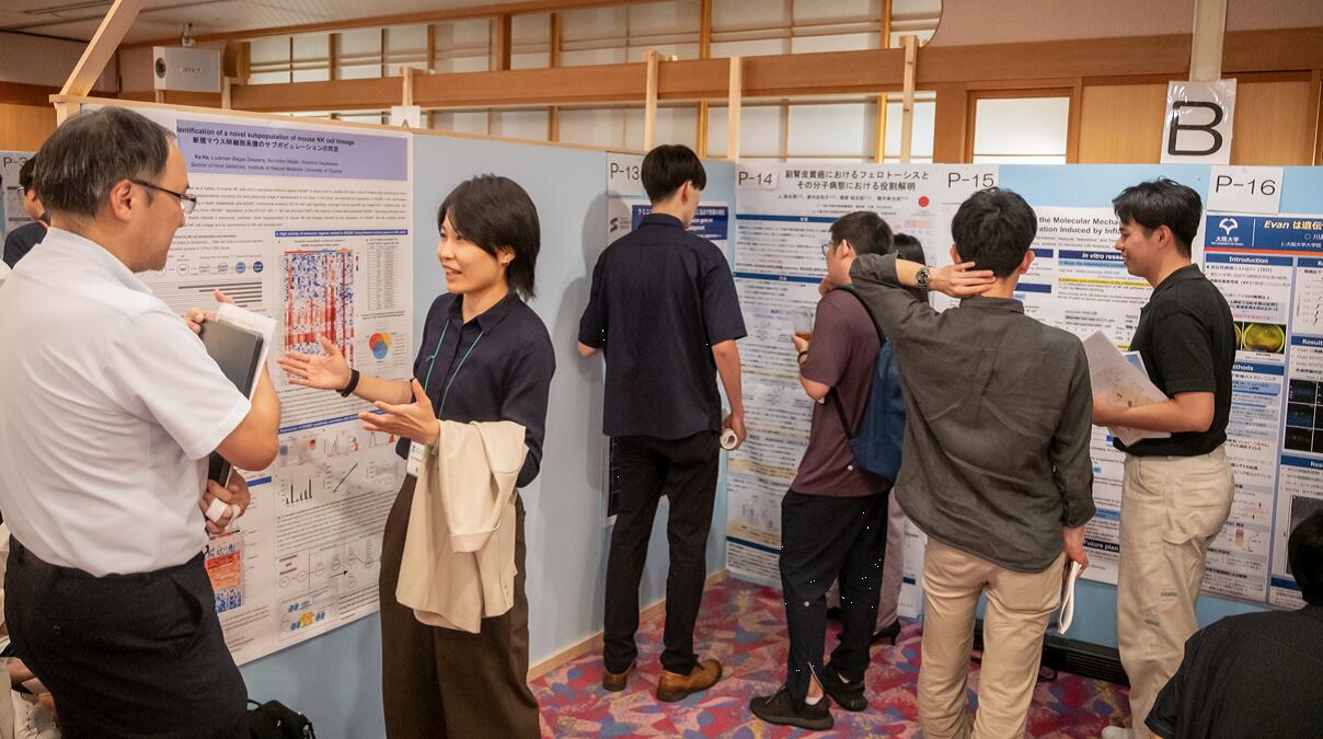 プロフェッショナルレクチャーでは、今回も若手研究者3名と、長く研究をリードしてきたラボ主催者3名(うち1名は特別講演)にご登壇いただきました。特別講演は、がん研究会がん研究所の野田哲生先生による「これまでのがん研究、これからのがん研究 -がん患者に根治をもたらす革新的がん医療開発を目指して」。およそ半世紀にわたるがん研究の歩みを振り返りながら、研究の楽しさや「なぜ研究が必要か」という根源的な問い、そしてご自身が大切にされてきたモデル動物研究についてお話し下さりました。そのお話はがん研究者だけでなく、本講習会に参加した様々な分野の聴衆にも響いていたのが印象的でした。岡田随象先生(大阪大学/東京大学)からは、遺伝統計学の基礎から疾患研究、そして個別化医療の最前線までを幅広く解説いただきました。さらに若手研究者に向けたメッセージは、すっと腑に落ちる内容で、とても印象に残るご講演となりました。山田泰広先生(東京大学)からは、生体内リプログラミング技術を応用した医科学研究についてご講演いただきました。病理学の知見を活かし、それをどのように動物モデルへ展開し解釈につなげていくのかを示された内容は、独自の視点に基づいた非常に興味深いものでした。