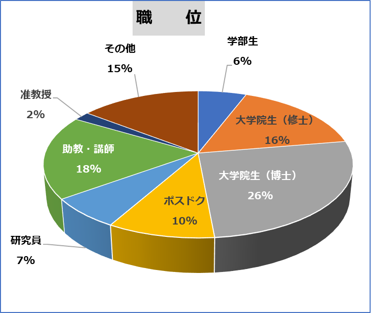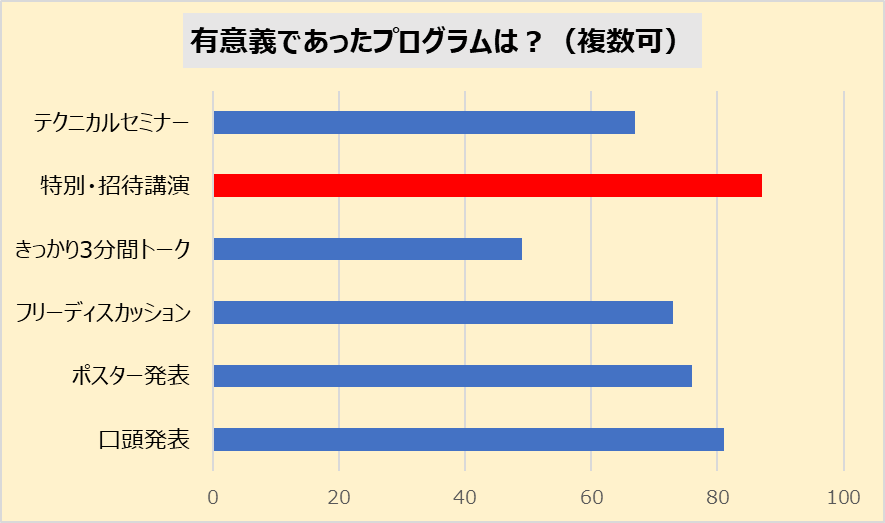 - 初めての参加でしたが、非常に多くの研究者とディスカッションさせていただく機会があり、大変有意義でした。また、友人も多くでき、より一層研究に打ち込もうと思える良い機会でした。このような機会を設けて下さり、ありがとうございました!(大学院生(修士)男性)